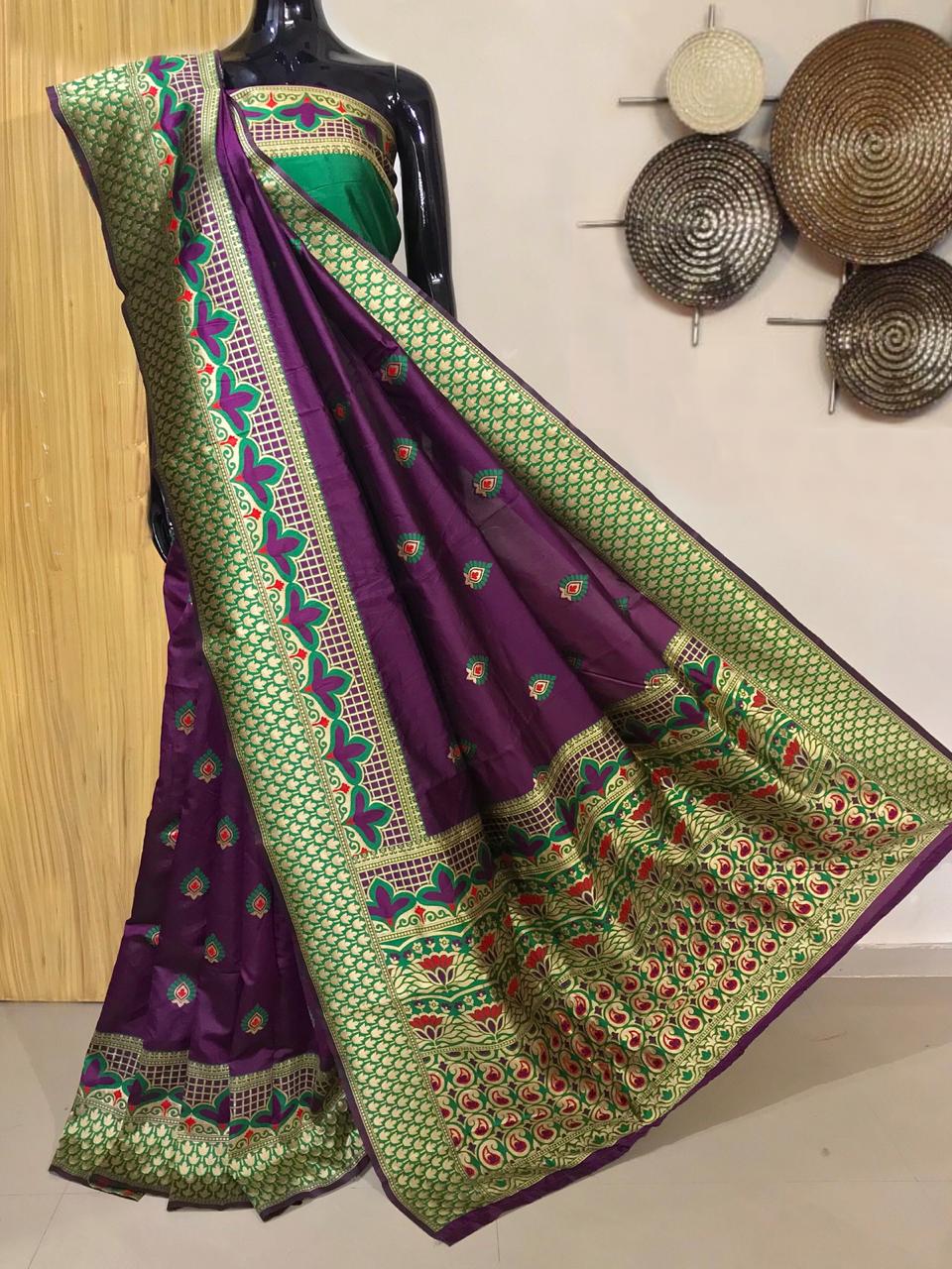 Banarasi silk weaving saree with exclusive meenakari contrast border and rich meenakari pallu with blouse piece